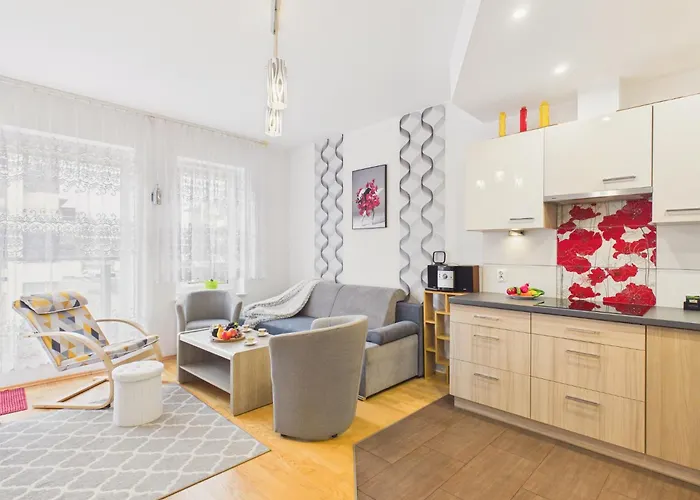 Baltic Harmony Mazowiecka Apartment By Solarento offers self-catering amenities, such as a kitchenette, and a dining area for guests' convenience. Baltic Harmony Mazowiecka Apartment By Solarento is just moments from Mazowiecka przy Artyleryjskiej 1 Nr 06 bus station. At the property, guests are provided with a kitchenette.